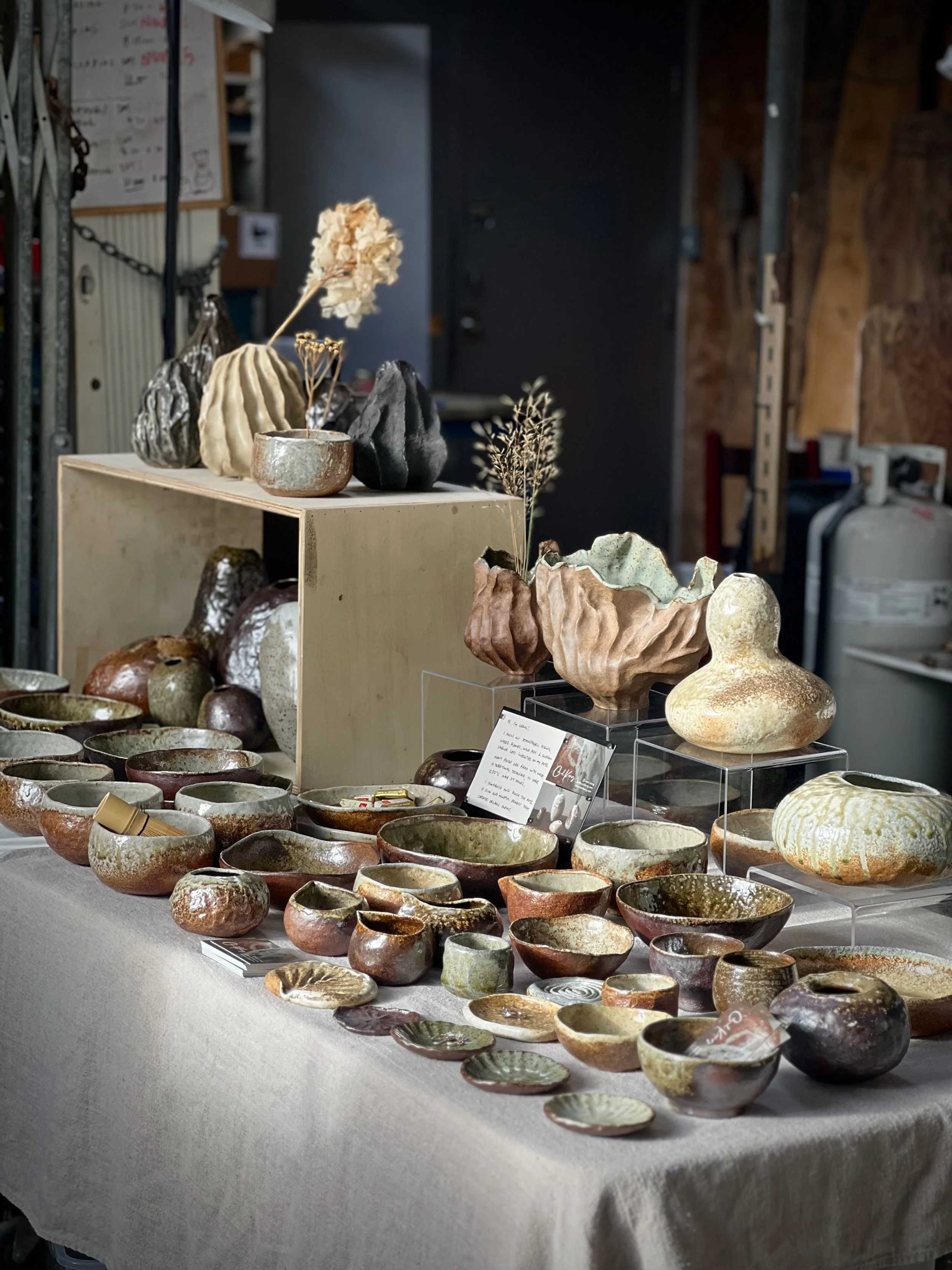 I spent weeks leading up to the event sorting out the many logistics of packaging, pricing, point of sale, and display. I felt well prepared, even with the added inconvenience of our outdoor space with only a small secure area that packed up like a puzzle. While most other artists could just lock their studio doors at the end of the night, we needed to pack up most of the wares and move tables and shelves, being careful not to break any wobbly pots. The day after, I was sick with the flu; an inevitable combination of standing outside for four damp days, conversing with hundreds of people, and having already been exhausted from ramping up production and squeezing in a chilly wood soda firing the week before.