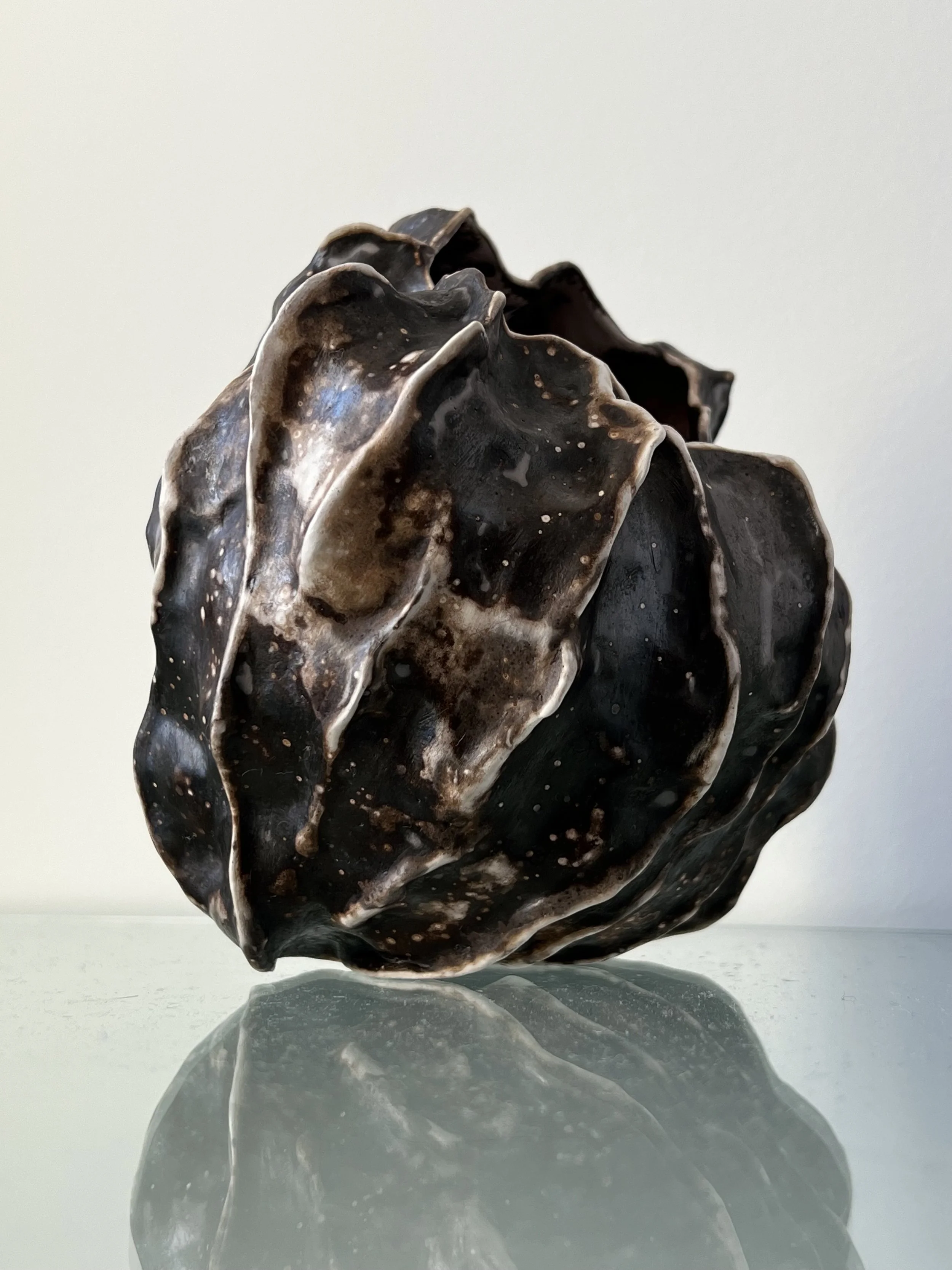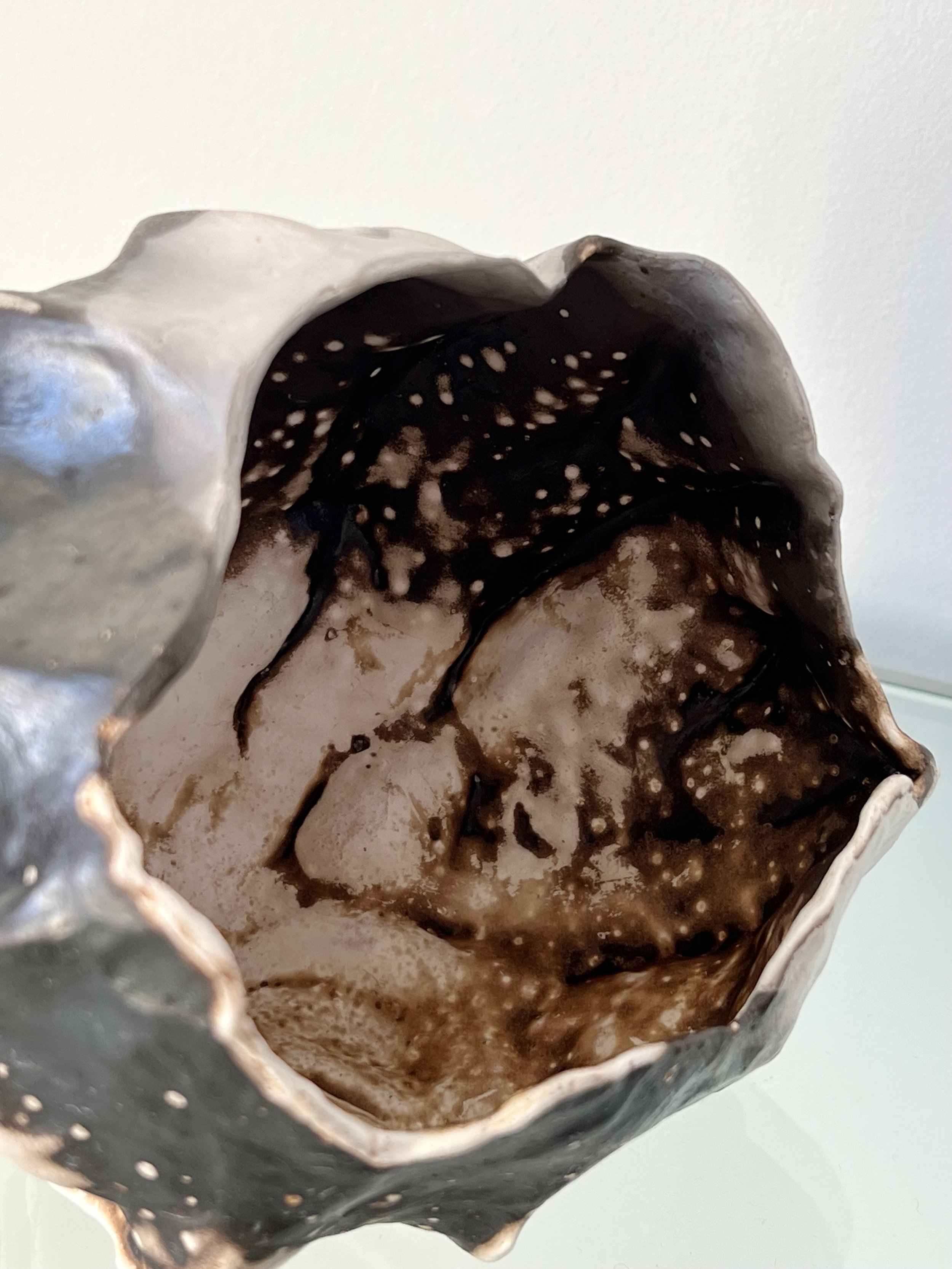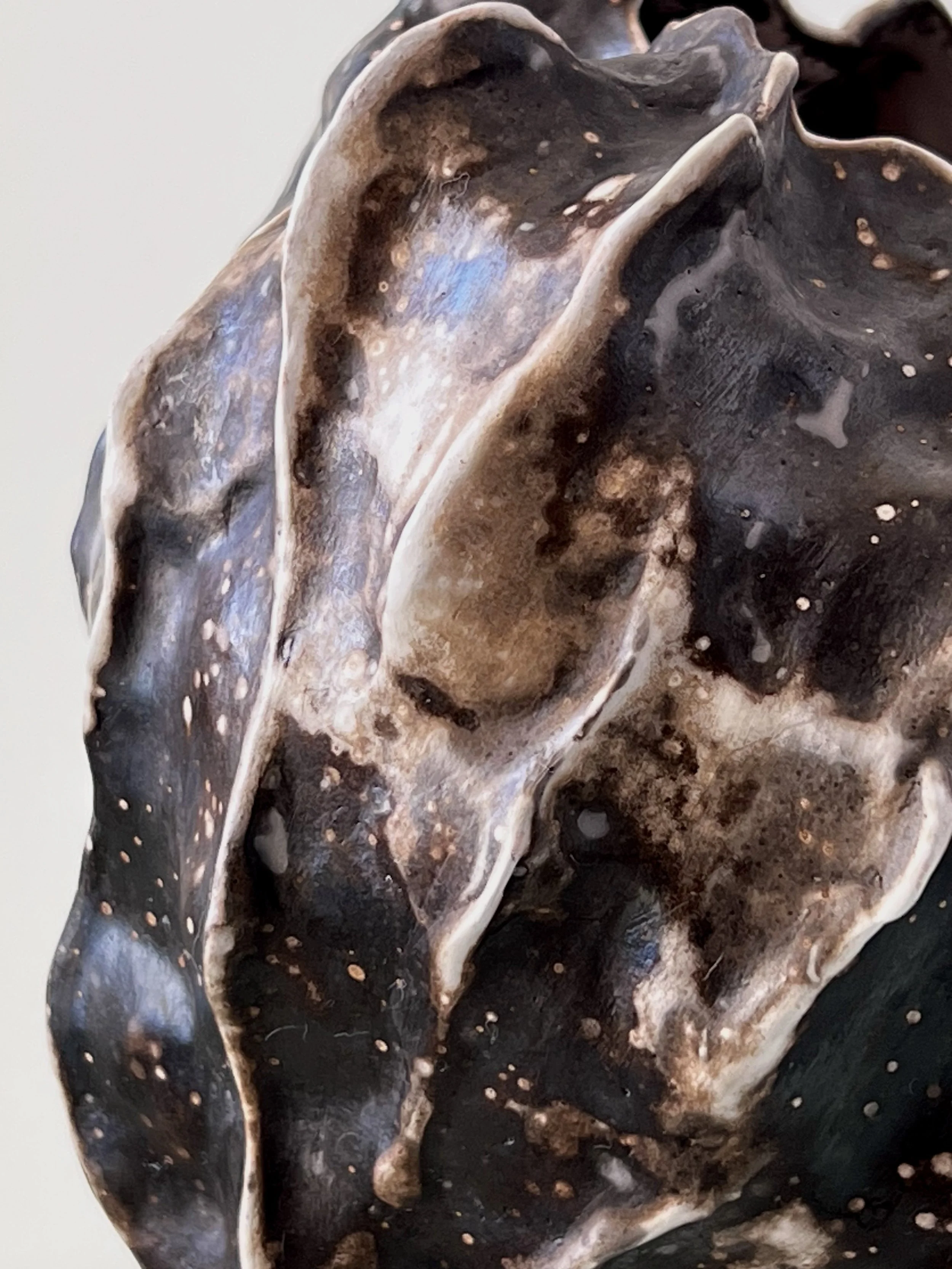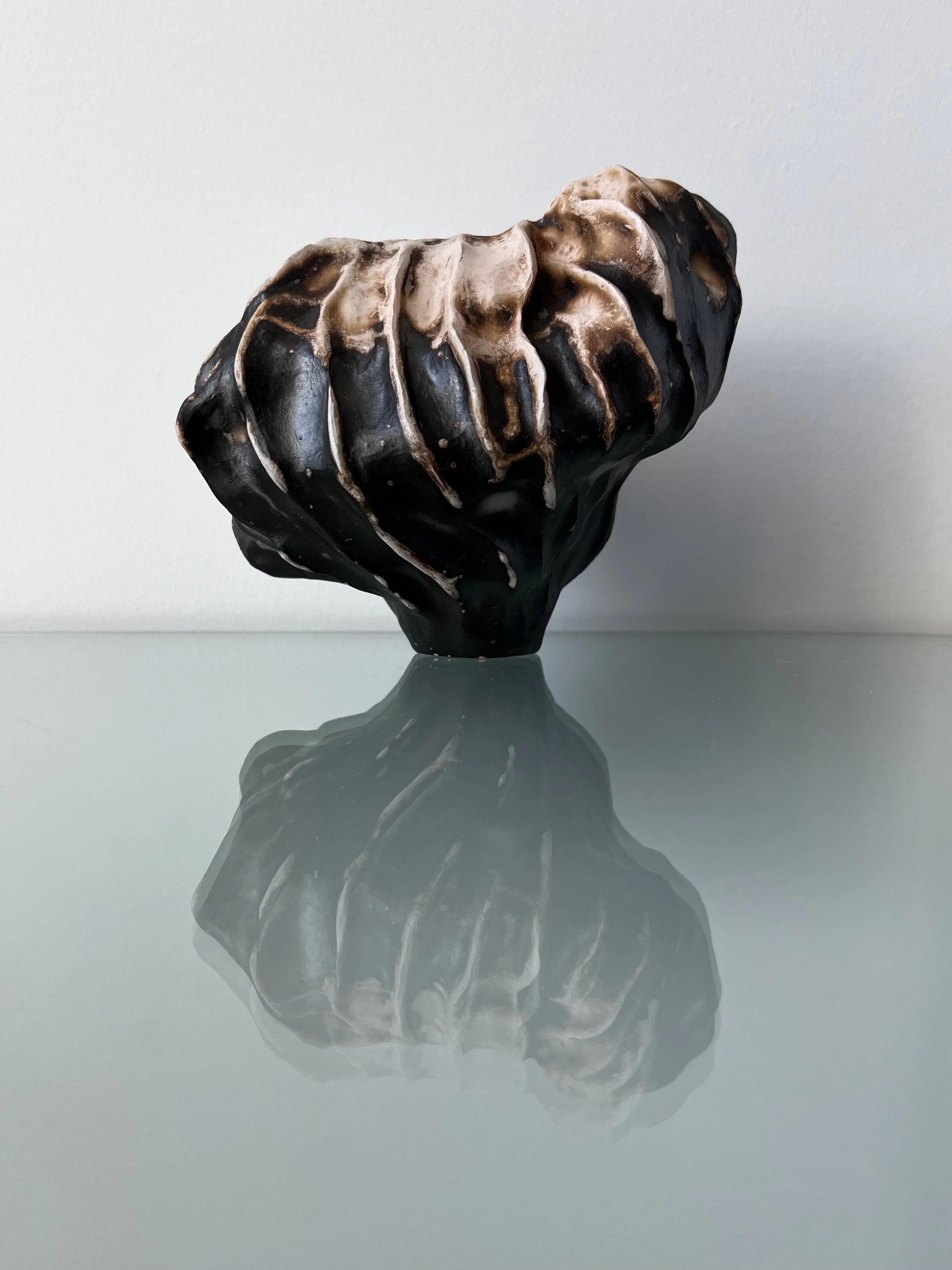 One side of the same obvara-fired shell sculpture